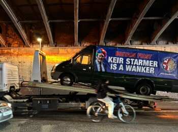 A week ago, British fascism’s village idiot Paul Golding drove his Britain First ’battle bus’ around Manchester with a banner saying ’Keir Starmer is a wanker’.